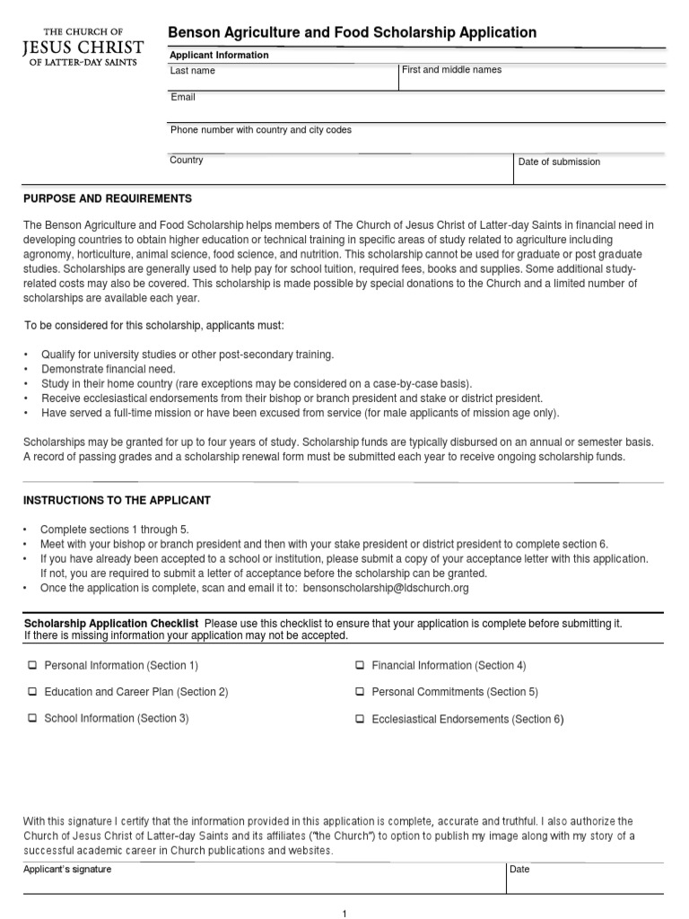Benson Agriculture Scholarship Guide PDF Tuition Payments Further