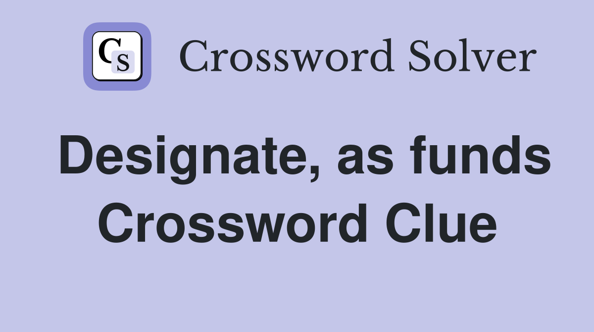 Designate, as funds Crossword Clue Answers Crossword Solver