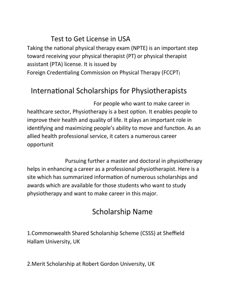 Scholarships For Physiotherapy Students PDF Physical Therapy