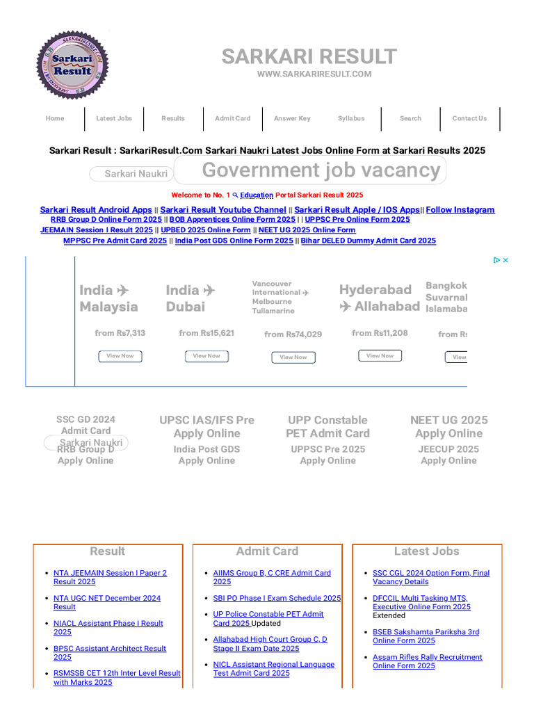 Sarkari Result , Sarkari Result 2025 Sarkari Results Sarkariresult