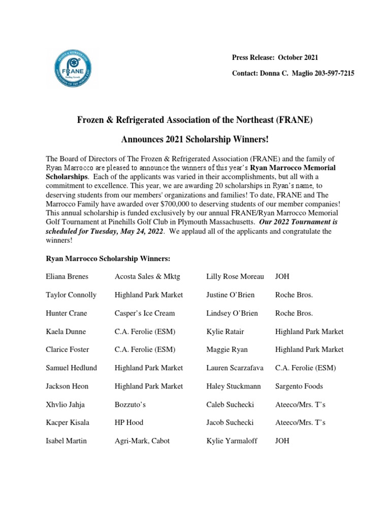 2021 FRANE Scholarship Winners Press Release 1 PDF
