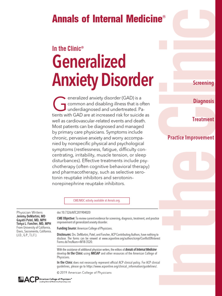 (PDF) Generalized anxiety disorder Diagnosis and treatment